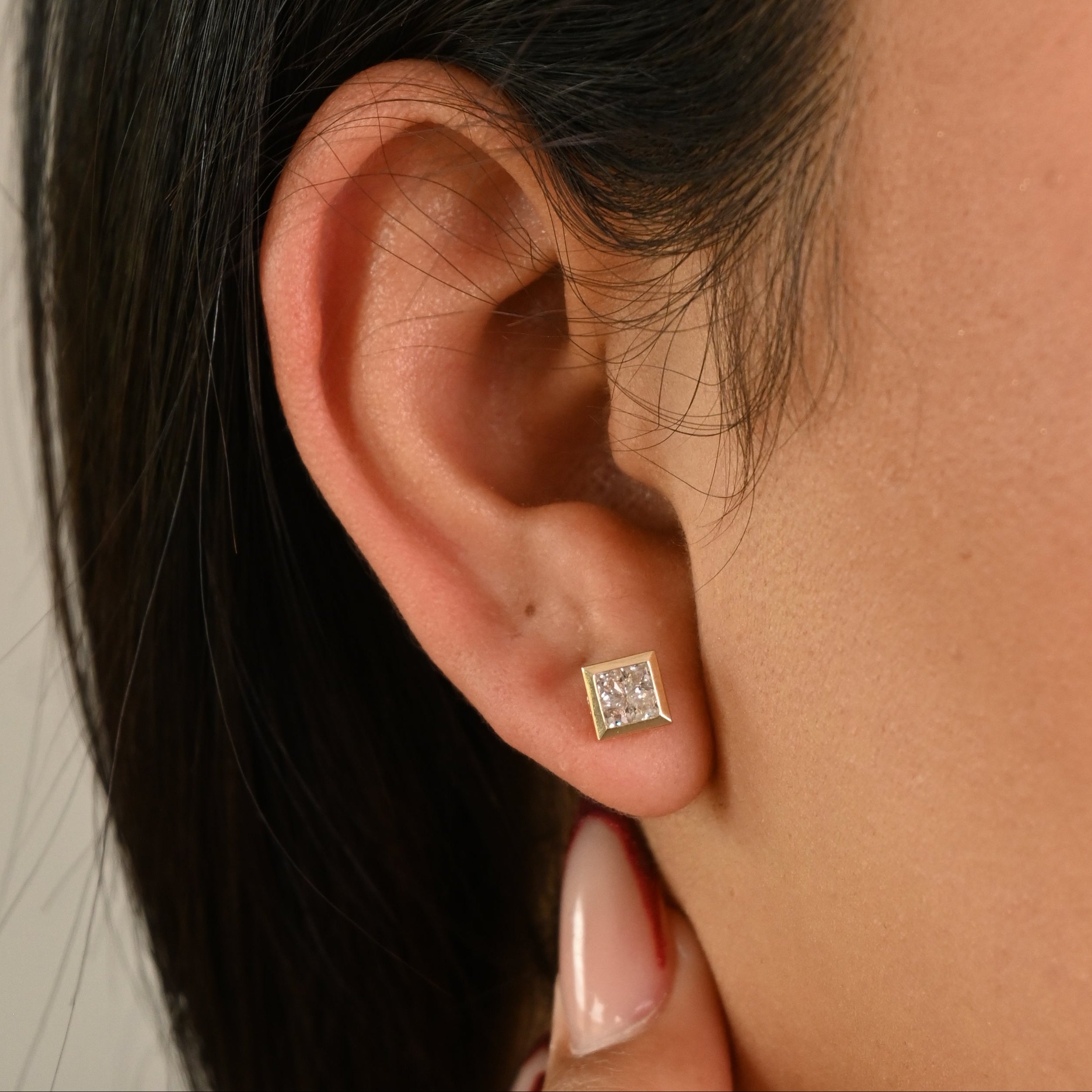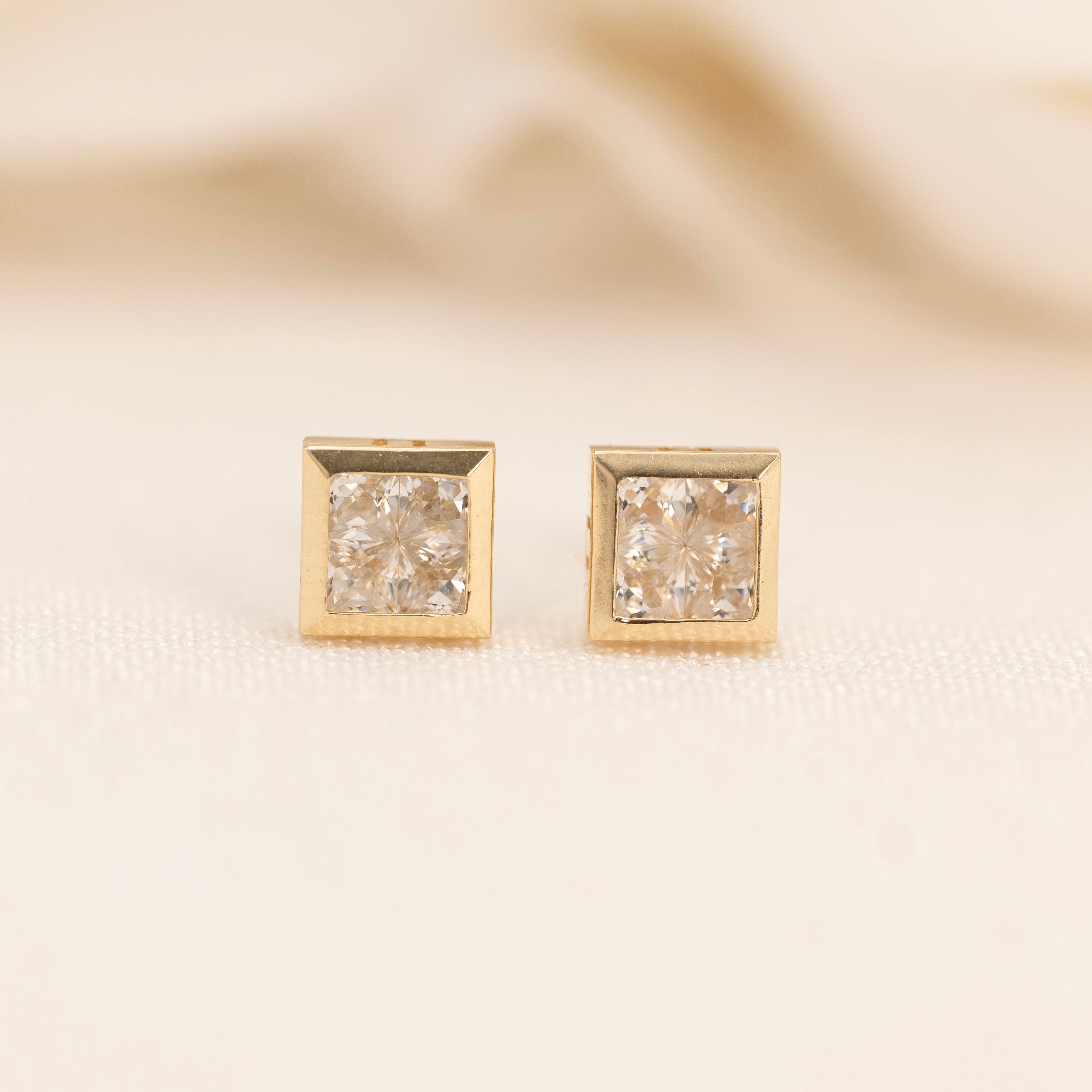 14k Square Bezel CZ Earrings