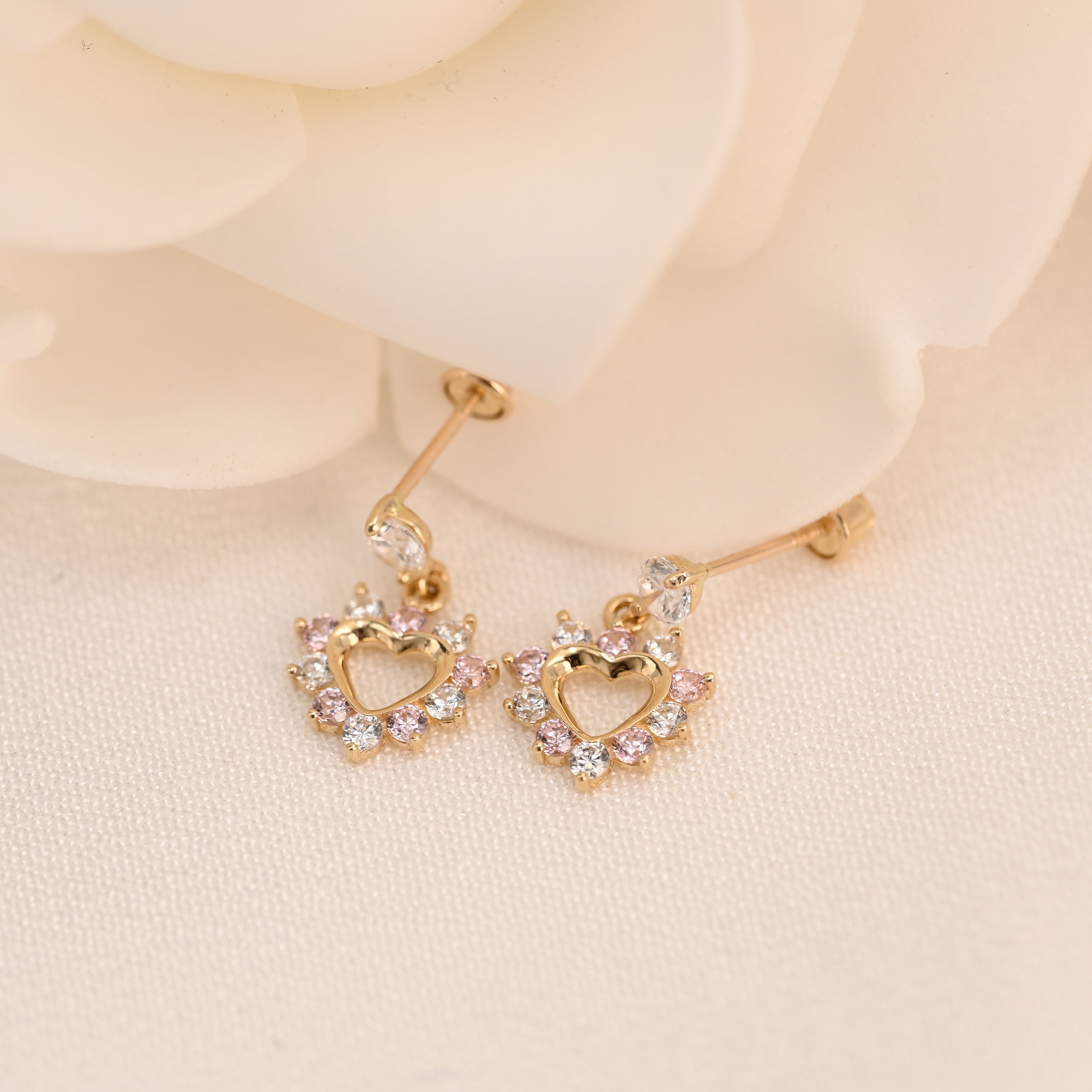 14k Heart Halo Drop Stud Earrings
